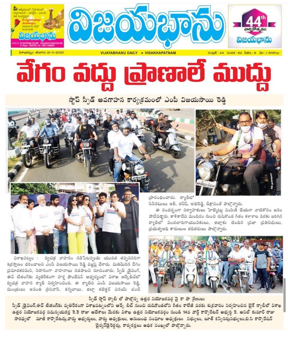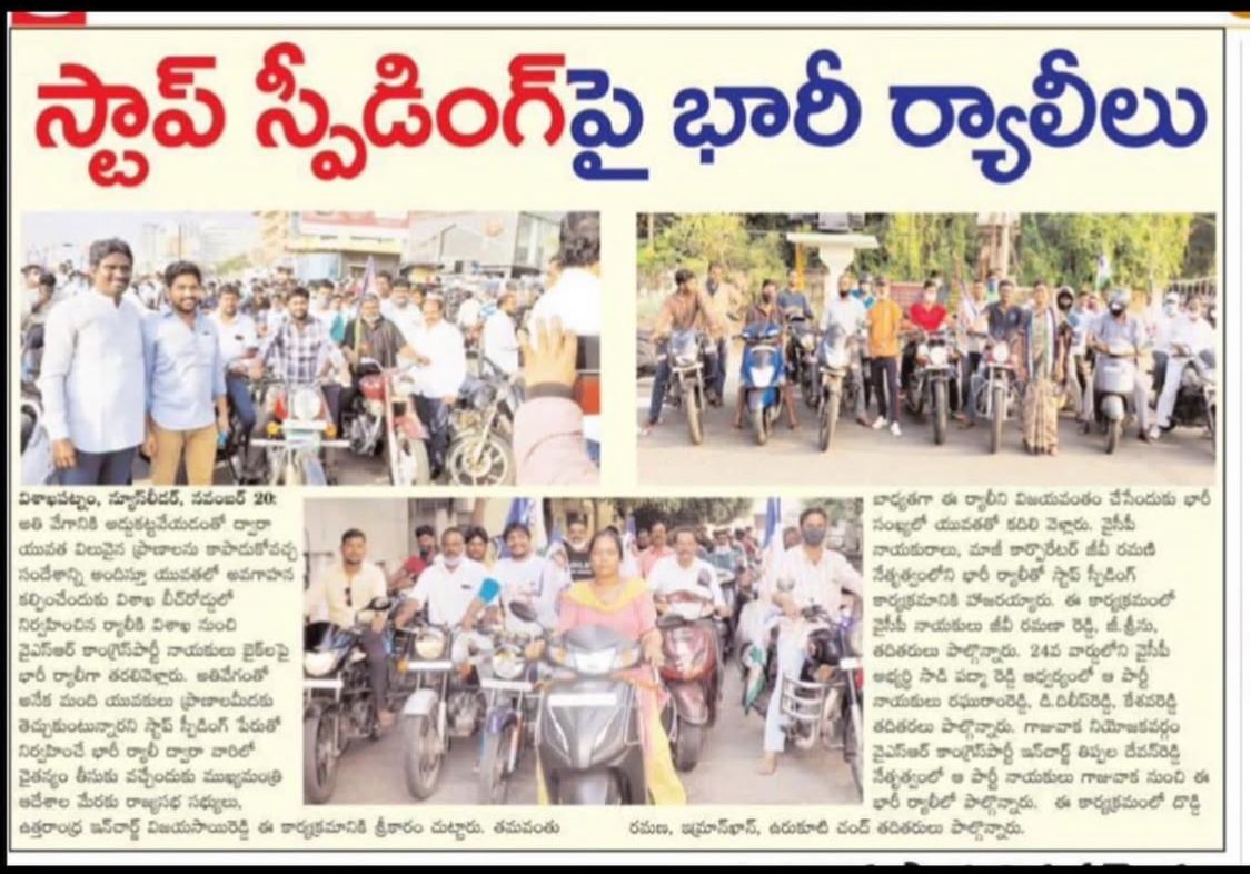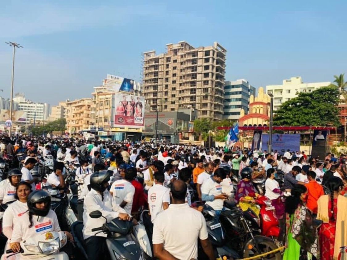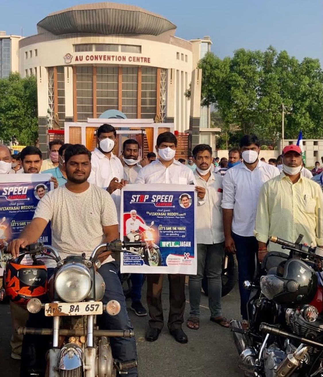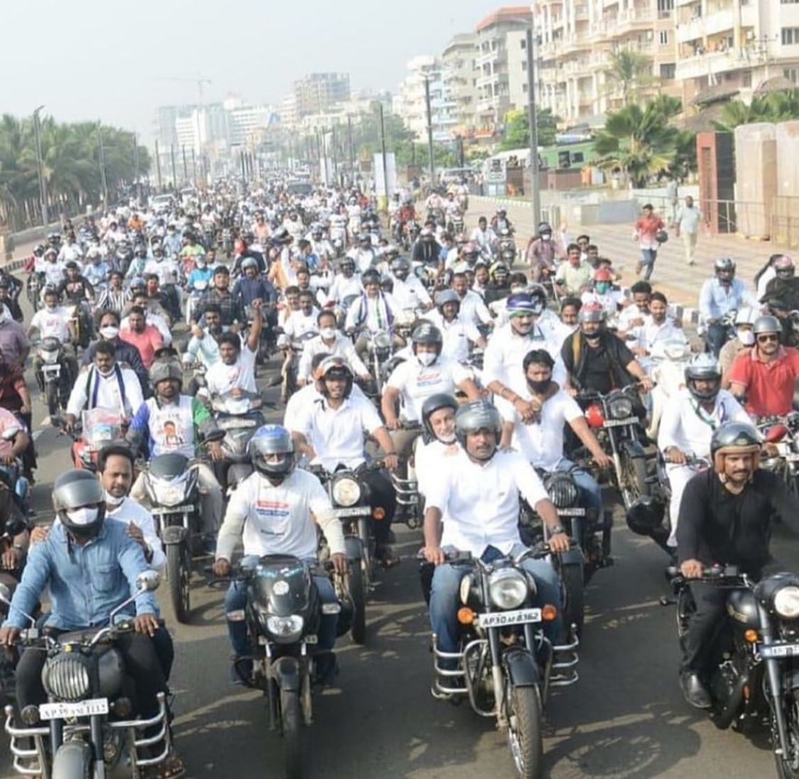 6th Event Stop speed driving bike rally with AU university students and vizag people at beach road . Kali matha temple