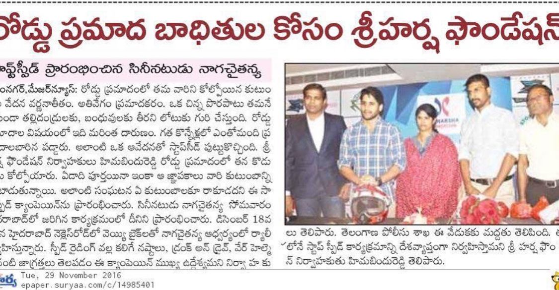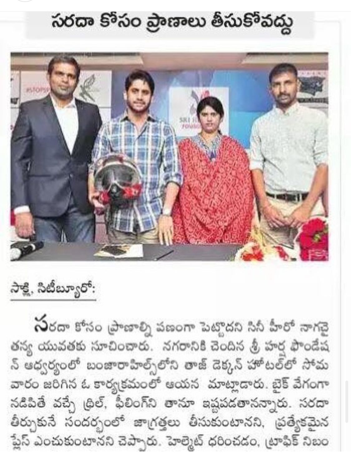 2nd Event Sriharsha foundation conducting pressmeet at taj Deccan with Akkineni Nagachaitanya against stop speed driving