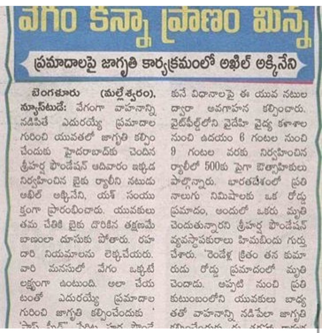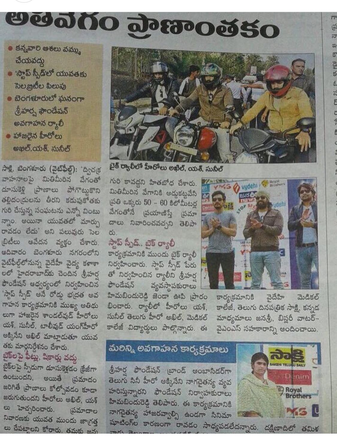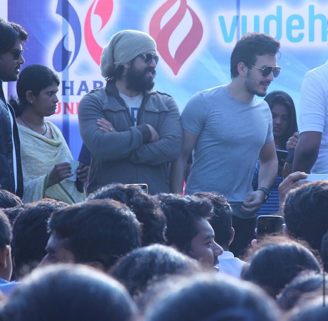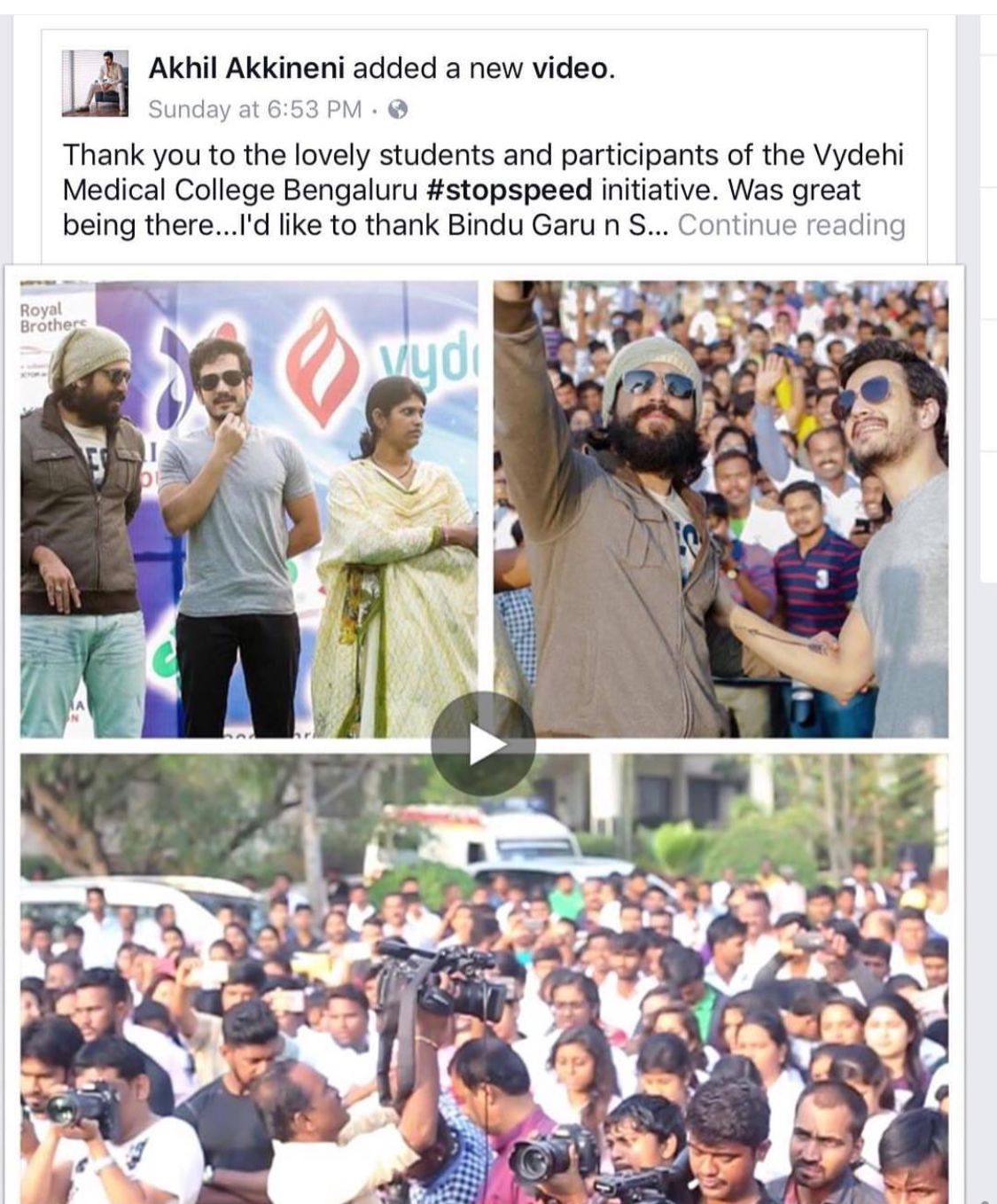 4th Event Stop speed driving awareness event with KGF film Hero Yash and Akkineni Akhil at Vaidehi medical college banglore.